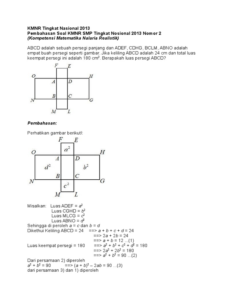 Soal Dan Pembahasan Kompetisi Matematika Nalaria Realistik Kmnr Tahun 2016 Babak Penyisihan Kategori Kelas 9 Mathcyber1997